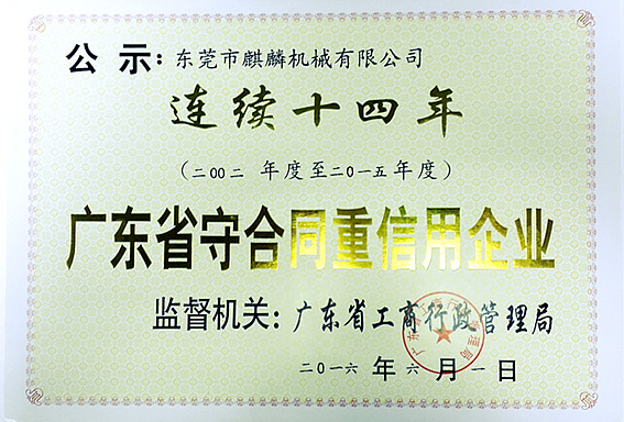 麒麟公司連續(xù)十四年被評為“廣東省守信用重合同企業(yè)”