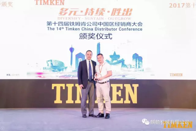 麒麟機械有限公司作為鐵姆肯公司在中國最重要戰(zhàn)略合作伙伴之一應(yīng)邀參會,在經(jīng)銷商頒獎儀式上,憑借多年來持續(xù)合作,獲得: