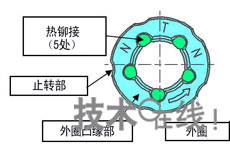 新產(chǎn)品還采用了使其便于操作的設計。比如,熱鉚接外圈及蓋部件之后,部件不再零散(圖3)。除可通過端面顏色識別嵌入方向之外,還標明了鎖定方向。如果改變離合器的嵌入方向,鎖定方向也會隨之改變。