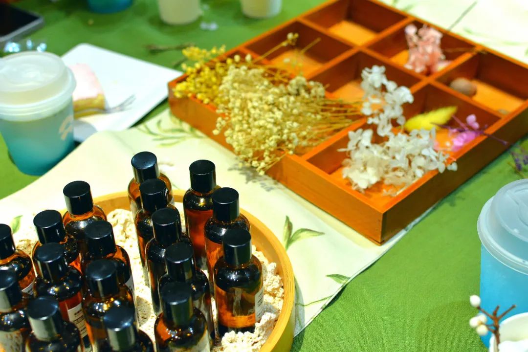挑選干花,熱熔豆蠟,加入精油、構(gòu)思裝飾,
